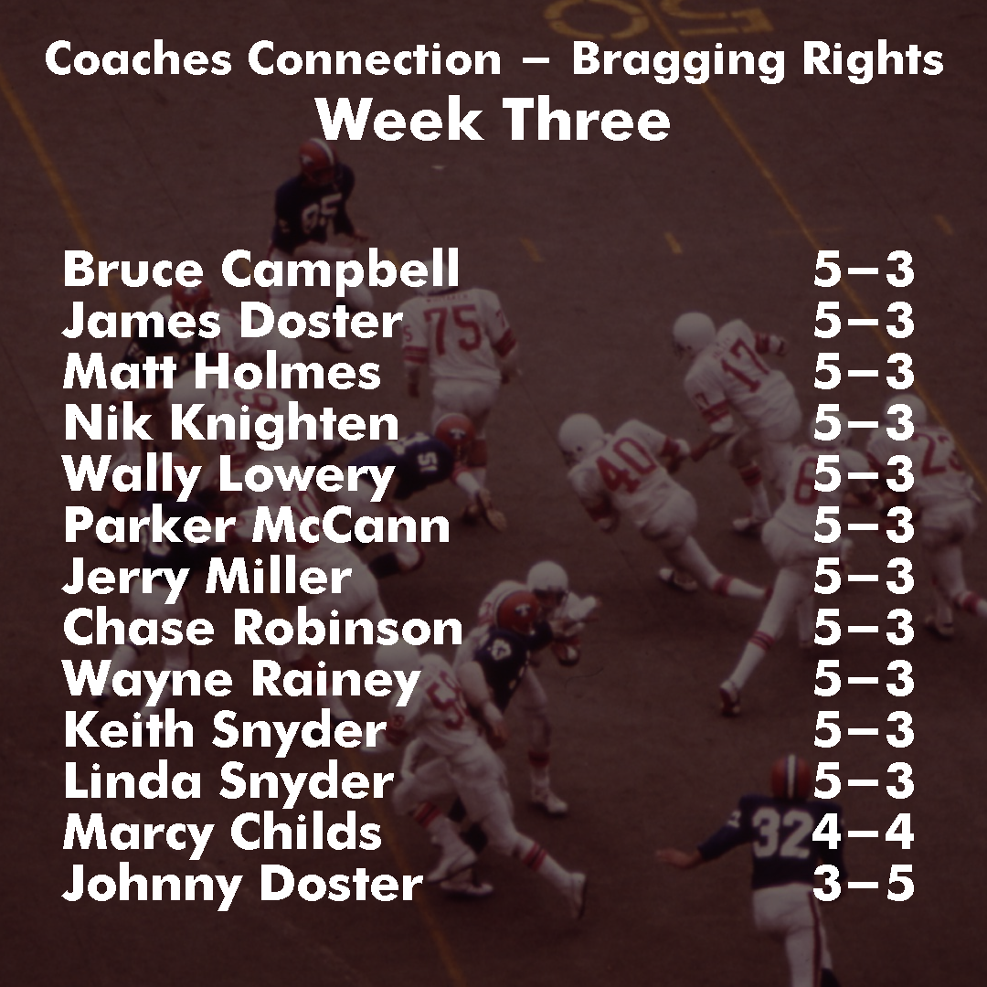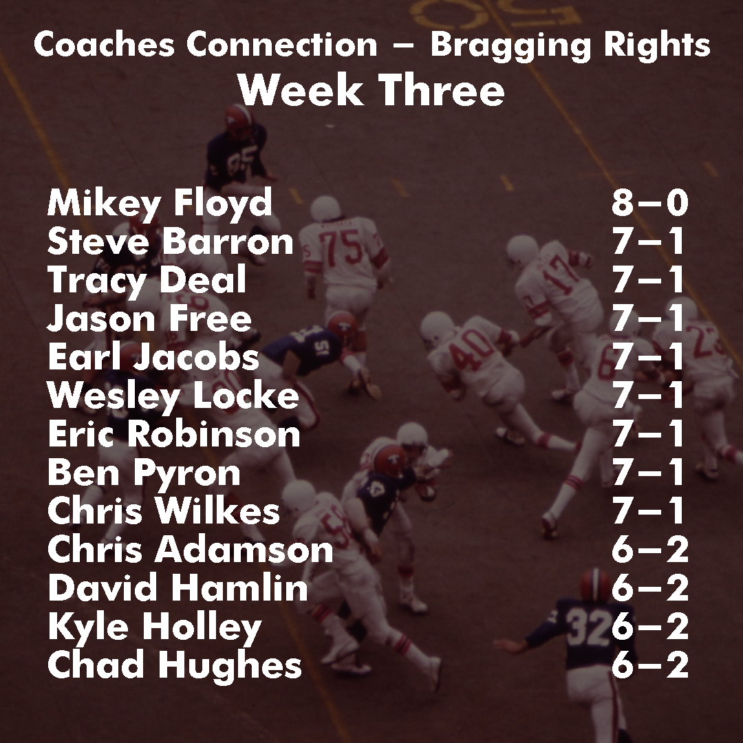 The Coaches Connection returns for another high school football season. Hear from area coaches and listen in as the Gang of Experts and our special guest prognosticators discuss each week's games and give their predictions. The Gang of Experts includes Bart Snyder, Robin Snyder, and Clark Boutwell alongside show host John Mike McCall..